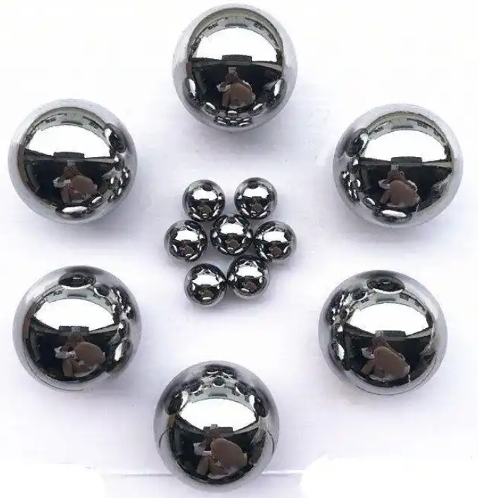 Tungsten steel ball material grades: YG6, YG8. This material is called hard alloy, which has high density, high hardness, wear resistance, pressure resistance, rust prevention, and corrosion resistance. It can replace metal balls in areas where metal balls cannot be applied, of course, at a relatively high price.